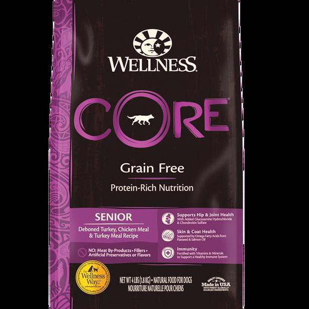 Depan Wellness Core Grain Free Senior Deboned Turkey Recipe Dog Food Akhir